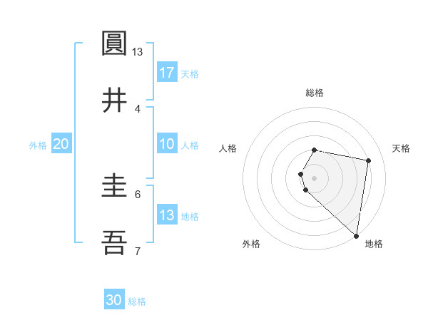 圓井 圭吾さんの天格は17画の4点!