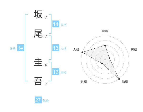 坂尾 圭吾さんの地格は13画の5点!
