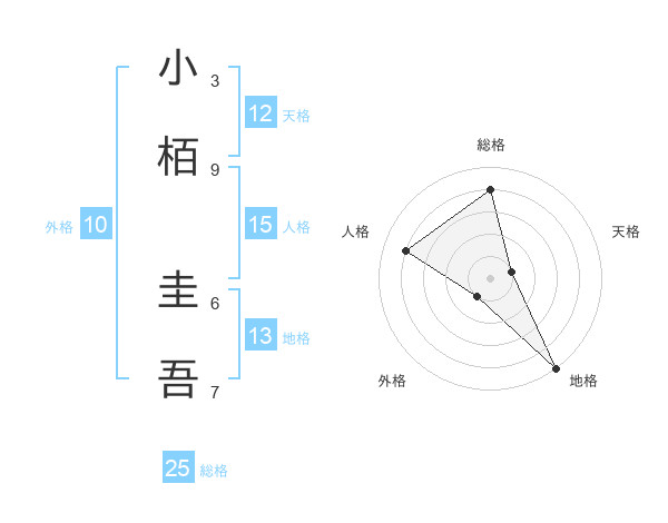 小栢 圭吾さんの天格は12画の1点!