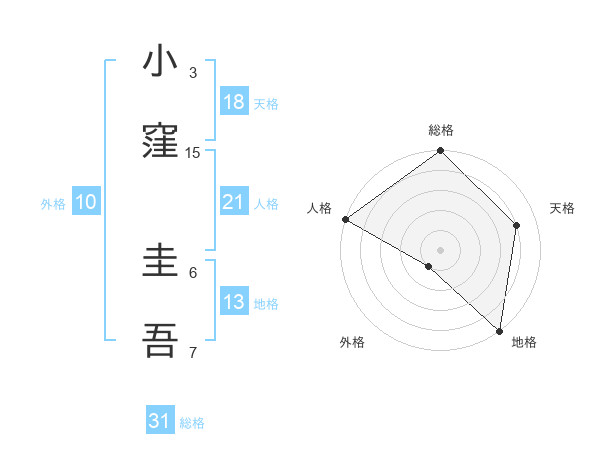 小窪 圭吾さんを姓名の画数から五運を鑑定