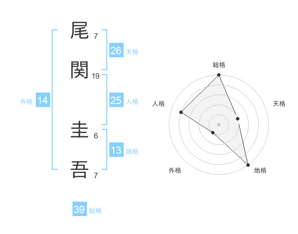 尾関 圭吾さんを姓名の画数から五運を鑑定