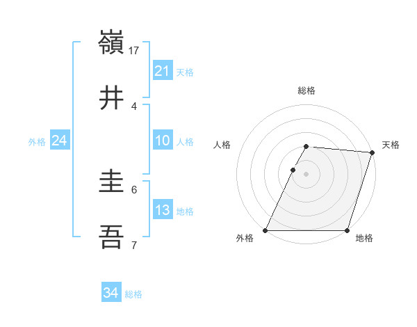 嶺井 圭吾さんを姓名の画数から五運を鑑定
