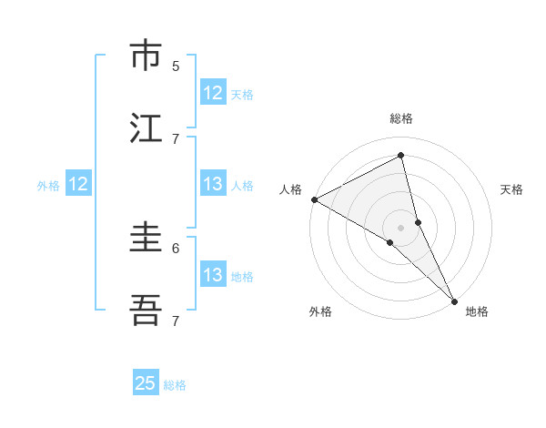市江 圭吾さんの地格は13画の5点!