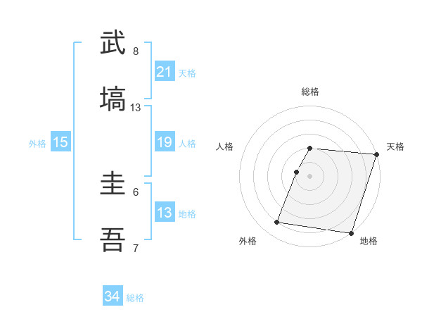 武塙 圭吾さんの天格は21画の5点!