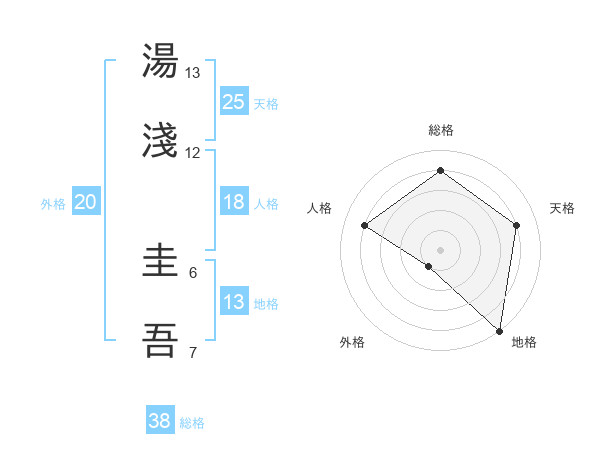 湯淺 圭吾さんの総格は38画の4点!