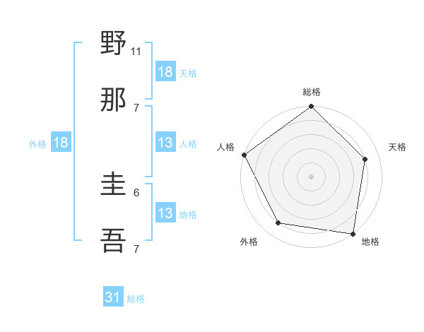 野那 圭吾さんの総格は31画の5点!