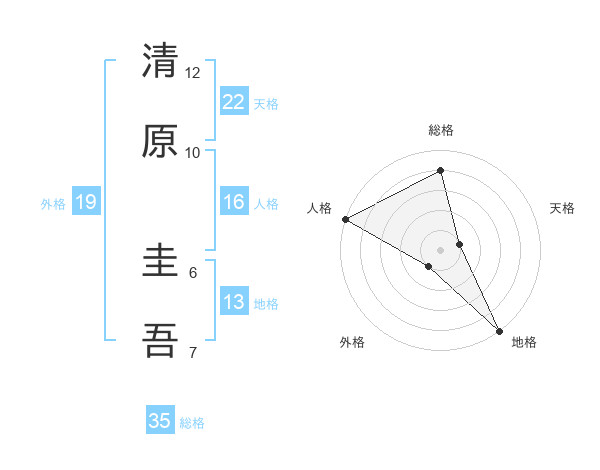 清原 圭吾さんを姓名の画数から五運を鑑定
