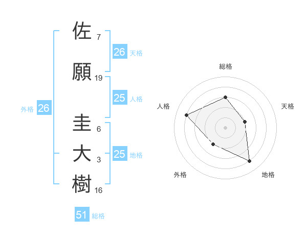 佐願 圭大樹さんを姓名の画数から五運を鑑定