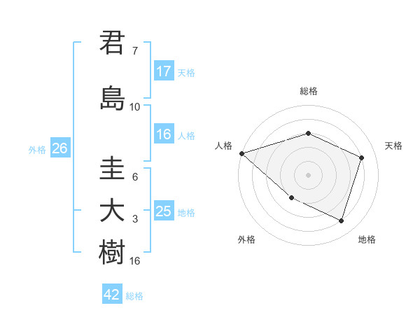君島 圭大樹さんを姓名の画数から五運を鑑定