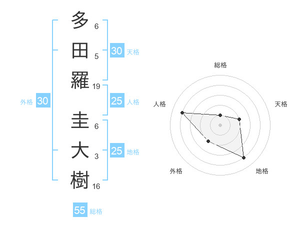 多田羅 圭大樹さんを姓名の画数から五運を鑑定