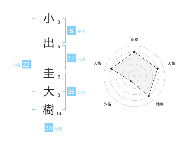 小出 圭大樹さんを姓名の画数から五運を鑑定