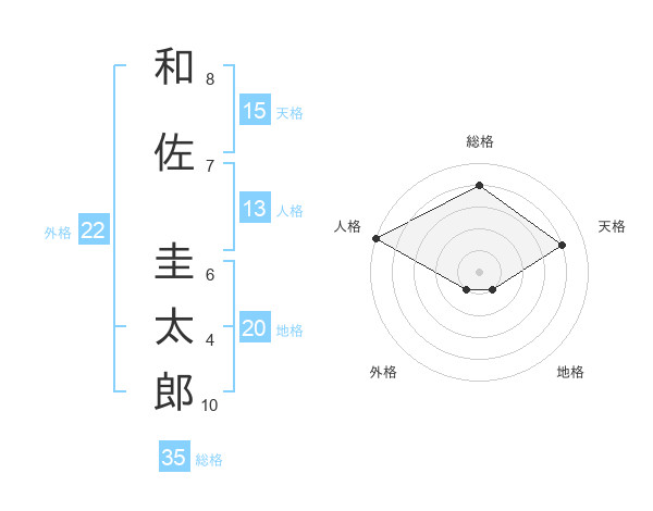 和佐 圭太郎さんの総格は35画の4点!