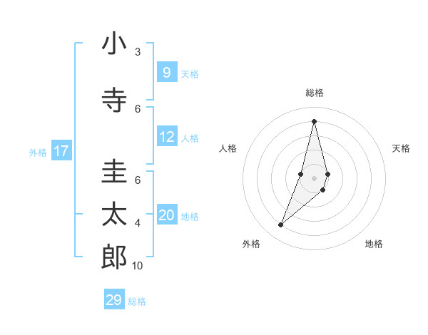 小寺 圭太郎さんを姓名の画数から五運を鑑定