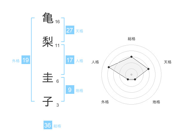 亀梨 圭子さんの総格は36画の3点!