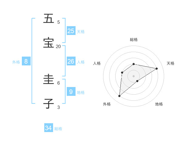 五宝 圭子さんの外格は8画の4点!