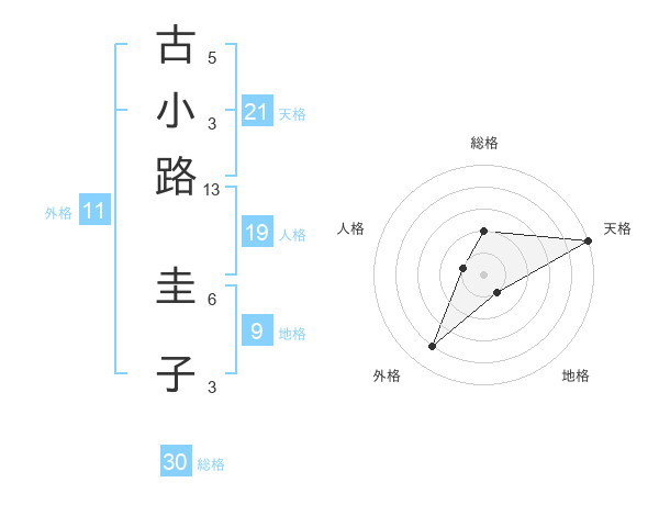 古小路 圭子さんを姓名の画数から五運を鑑定