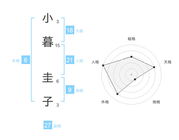 小暮 圭子さんの総格は27画の3点!