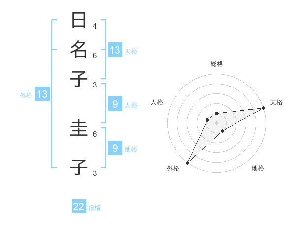 日名子 圭子さんの天格は13画の5点!