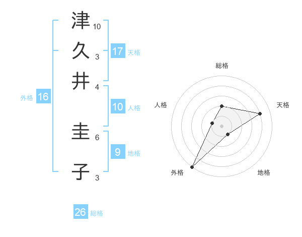 津久井 圭子さんの天格は17画の4点!