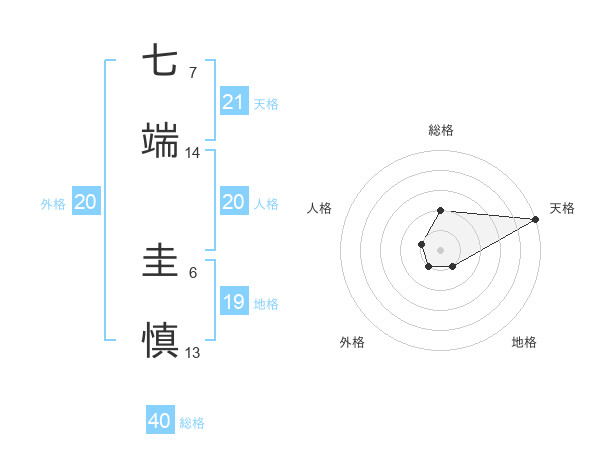 七端 圭慎さんの天格は21画の5点!