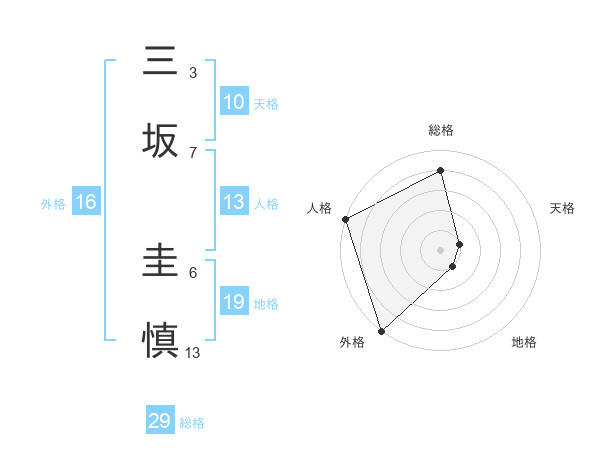 三坂 圭慎さんを姓名の画数から五運を鑑定
