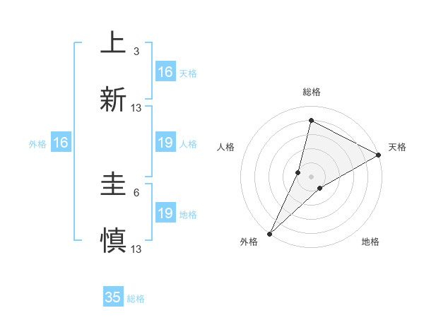 上新 圭慎さんを姓名の画数から五運を鑑定