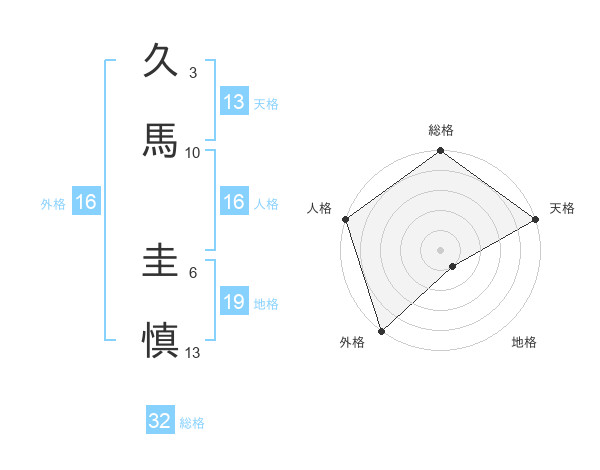 久馬 圭慎さんの総格は32画の5点!