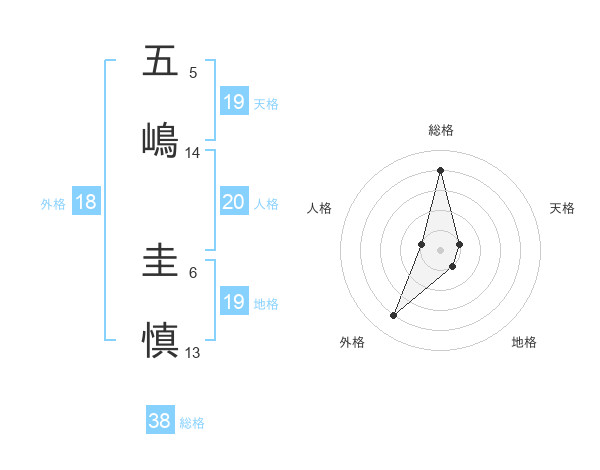 五嶋 圭慎さんの総格は38画の4点!