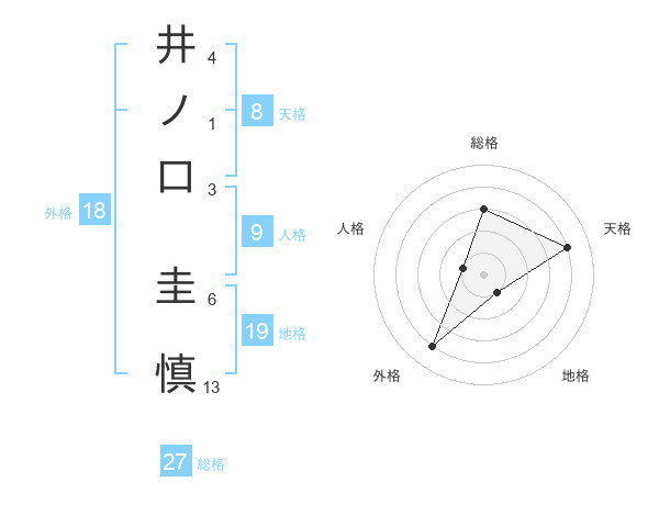 井ノ口 圭慎さんを姓名の画数から五運を鑑定