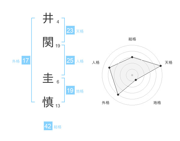 井関 圭慎さんを姓名の画数から五運を鑑定