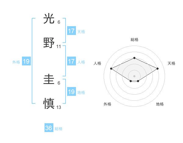 光野 圭慎さんを姓名の画数から五運を鑑定