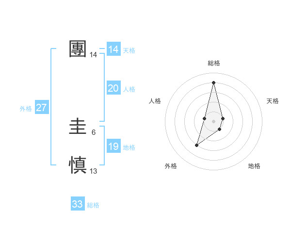 團 圭慎さんの総格は33画の4点!