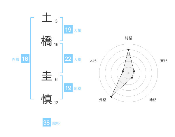 土橋 圭慎さんを姓名の画数から五運を鑑定