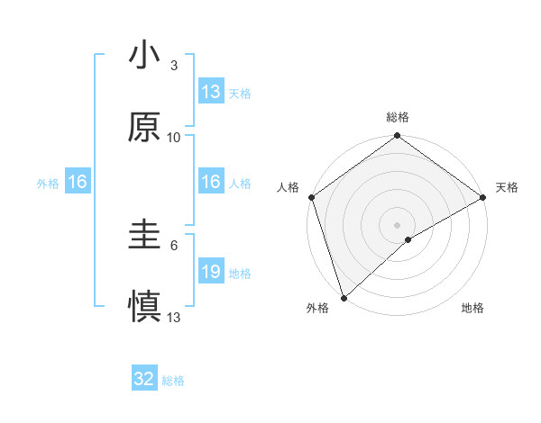 小原 圭慎さんの総格は32画の5点!