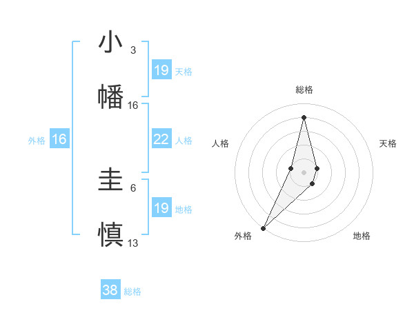 小幡 圭慎さんの総格は38画の4点!