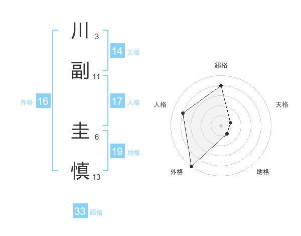 川副 圭慎さんを姓名の画数から五運を鑑定