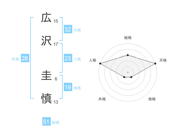 広沢 圭慎さんを姓名の画数から五運を鑑定