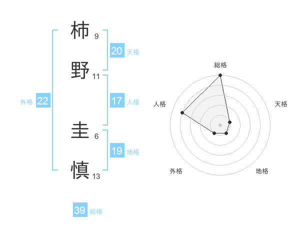 柿野 圭慎さんの総格は39画の5点!