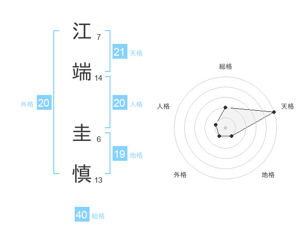 江端 圭慎さんの天格は21画の5点!