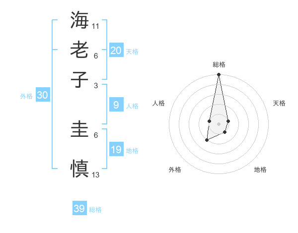 海老子 圭慎さんの総格は39画の5点!