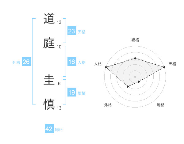 道庭 圭慎さんを姓名の画数から五運を鑑定