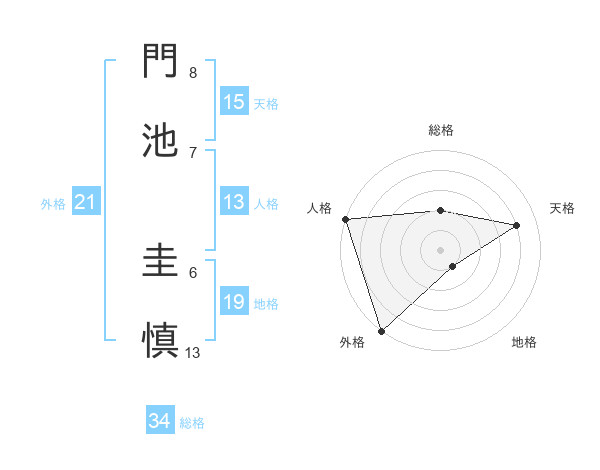 門池 圭慎さんを姓名の画数から五運を鑑定