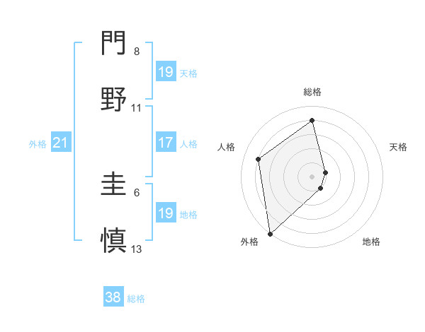 門野 圭慎さんの総格は38画の4点!