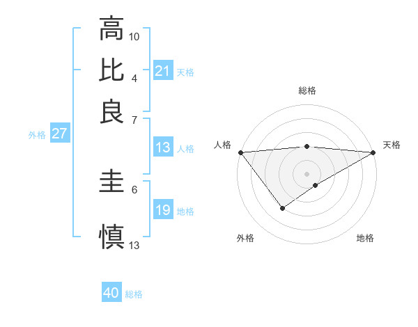 高比良 圭慎さんの天格は21画の5点!