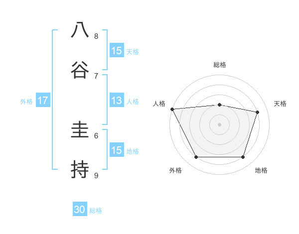 八谷 圭持さんの総格は30画の2点!