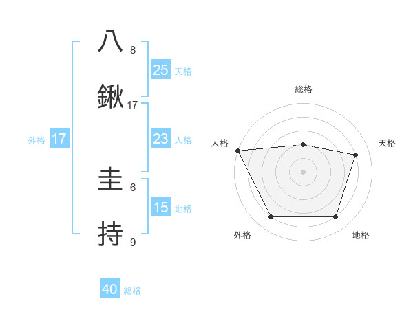 八鍬 圭持さんの総格は40画の2点!