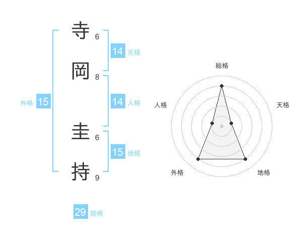 寺岡 圭持さんの総格は29画の4点!