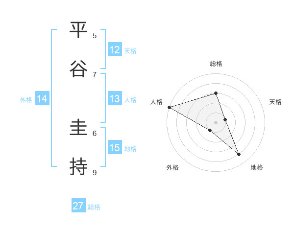 平谷 圭持さんを姓名の画数から五運を鑑定
