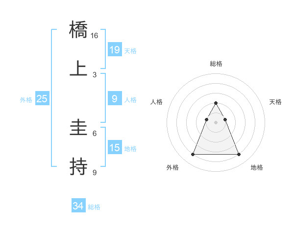 橋上 圭持さんを姓名の画数から五運を鑑定
