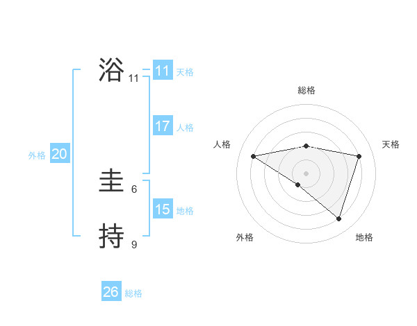 浴 圭持さんの総格は26画の2点!